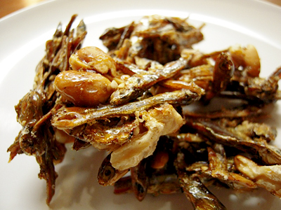 タレの分量は本の通りに、それ以外は残ったくるみやアーモンドでも皮付きのものをぶち込んで作ってみました。型に入れる部分は手抜きをして省略。それでも好評でした。ナッツ類は田作りによく合います。